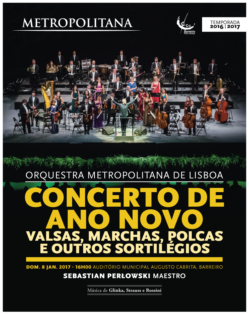 Pode entrar-se com o pé direito, vestir cores de vida nova, comer passas e romãs, bater tachos e panelas, e até mesmo mergulhar no mar gelado… Faça-se o que se queira. O novo ano só começa, verdadeiramente, com o Concerto de Ano Novo da Orquestra Metropolitana de Lisboa. A receita é de requinte. Junta-se a sedução das valsas à determinação das marchas, pontua-se com a fogosidade das polcas e tudo se mistura nos ocultos sortilégios de um mago da boa-disposição, o maestro Sebastian Perłowski. O encontro fica marcado, para recebermos juntos 2017.