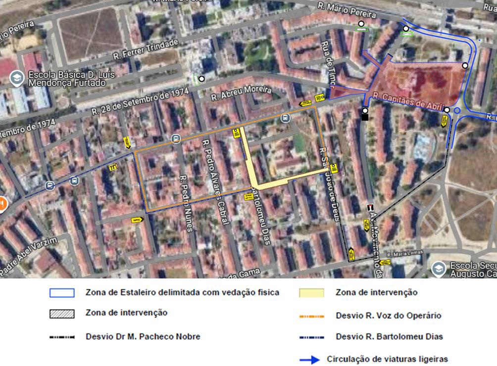 Publicado em 28-07-2025 Atualizado em 29-07-2025A Câmara Municipal do Barreiro informa que existe a necessidade de corte total do trânsito rodoviário na Rua Bartolomeu Dias e Rua Voz Operário, conforme imagem, a partir do dia 28 de julho, por um período previsível de 75 dias úteis.